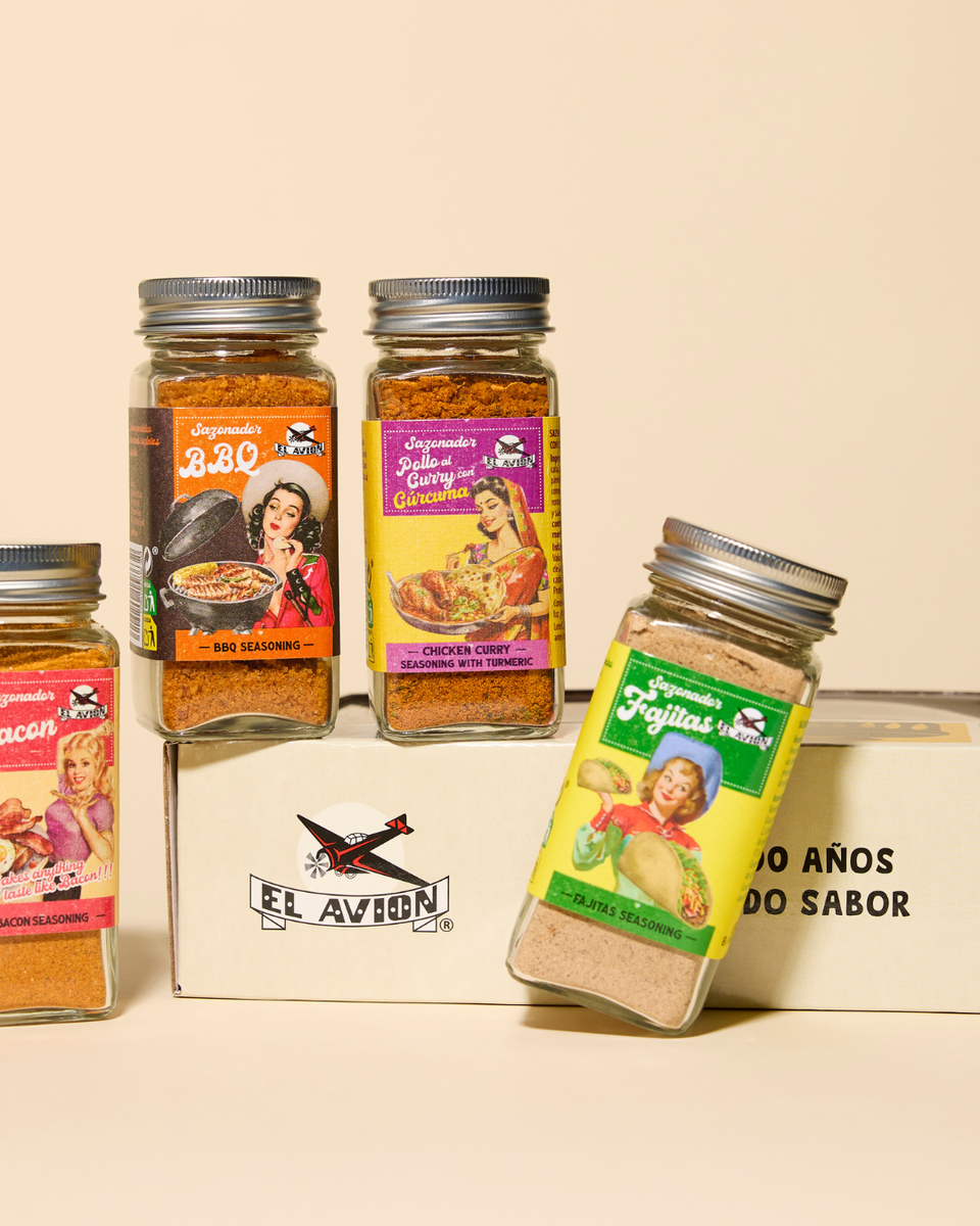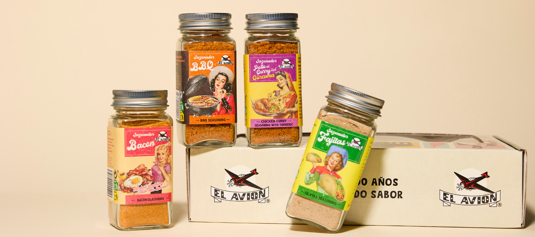 En EL AVION LAB nos reinventamos y lanzamos nuestra nueva línea de sazonadores. Mezclas de productos naturales que darán más sabor a tus platos. ¡Elige tu favorito y di adiós a las comidas aburridas!